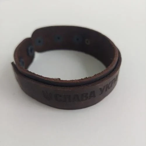 Браслет «Слава Україні», шкіряний, чорний, 25 мм, з лазерним гравіюванням (коричневий) (25559)